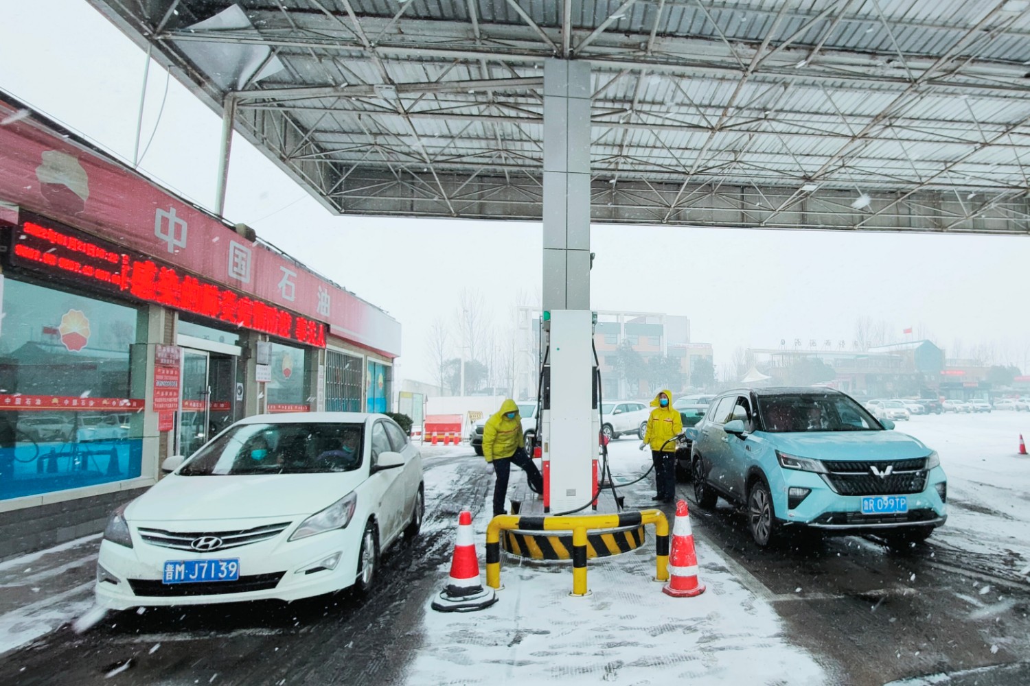 中油高速公司:一是科學(xué)部署,防患于未然。制定24小時(shí)值班和領(lǐng)導(dǎo)帶班制度,值班人員密切關(guān)注天氣變化,提前做好隱患排查、預(yù)案學(xué)習(xí)、物資儲(chǔ)備,遇雨雪天氣第一時(shí)間清掃加油場(chǎng)地、車道、油罐區(qū)、加油島等積雪、積冰,設(shè)置專人引導(dǎo)車輛進(jìn)出加油站,確保車輛安全。在濕滑地面、上下臺(tái)階等處鋪設(shè)防滑墊、設(shè)置溫馨提示語(yǔ),嚴(yán)控事故風(fēng)險(xiǎn),確保員工和司乘安全。二是提升安全意識(shí),嚴(yán)抓巡察力度。加強(qiáng)一線員工安全知識(shí)教育,提升應(yīng)急處置能力,并發(fā)放棉服、棉鞋、手套等防寒保暖物資。要求加油站加強(qiáng)對(duì)罩棚、站區(qū)、油罐區(qū)、圍墻、建筑物等的巡檢頻次和力度,發(fā)現(xiàn)隱患立即整改,確保設(shè)施設(shè)備正常運(yùn)行。三是優(yōu)質(zhì)服務(wù)到位,力保油品供應(yīng)充足。加油站提前儲(chǔ)備油品,做好雨雪天氣應(yīng)對(duì)措施,確保油品及時(shí)配送到站;做好油品接卸工作,確保油品數(shù)量、質(zhì)量不受寒潮雨雪天氣影響,為顧客提供保質(zhì)保量的油品。根據(jù)路況、車況適時(shí)開辟綠色通道,優(yōu)先為應(yīng)急保障車輛、物資運(yùn)輸車輛提供高效快捷的服務(wù)。